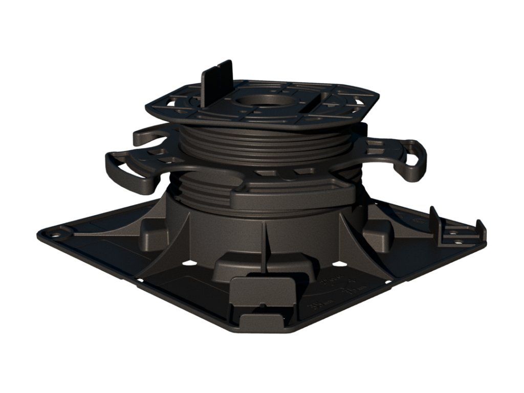 Boční nastavení umožňuje každé podpěře dosáhnout maximální výšky pouhým otočením centrálního kroužku, přičemž základna i hlava zůstávají pevně na místě.