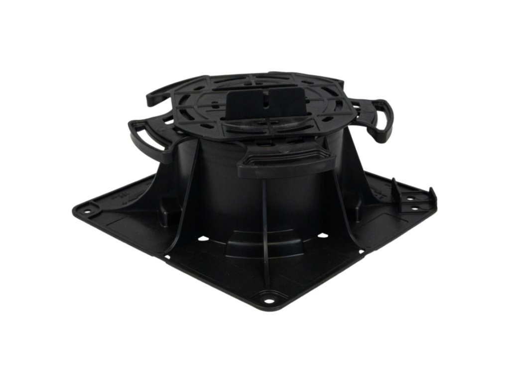 Boční nastavení umožňuje každé podpěře dosáhnout maximální výšky pouhým otočením centrálního kroužku, přičemž základna i hlava zůstávají pevně na místě.