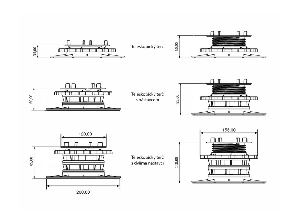 Podpěra ARKIMEDE NANO s nastavitelnou výškou od 18 mm do maximálně 36 mm.