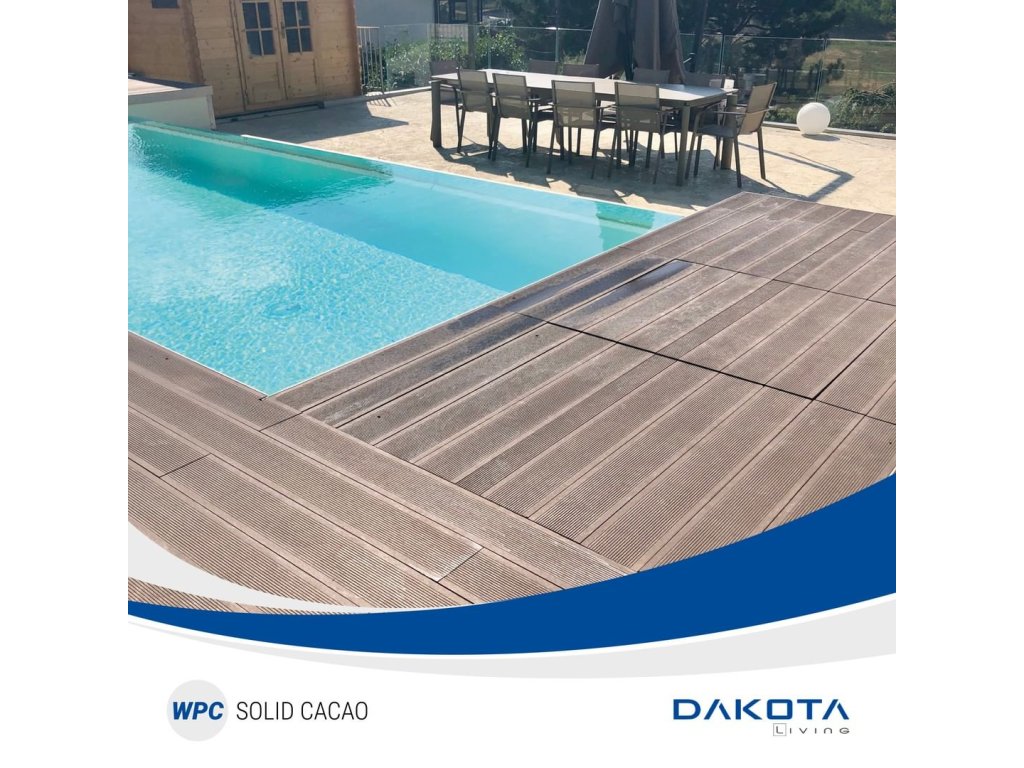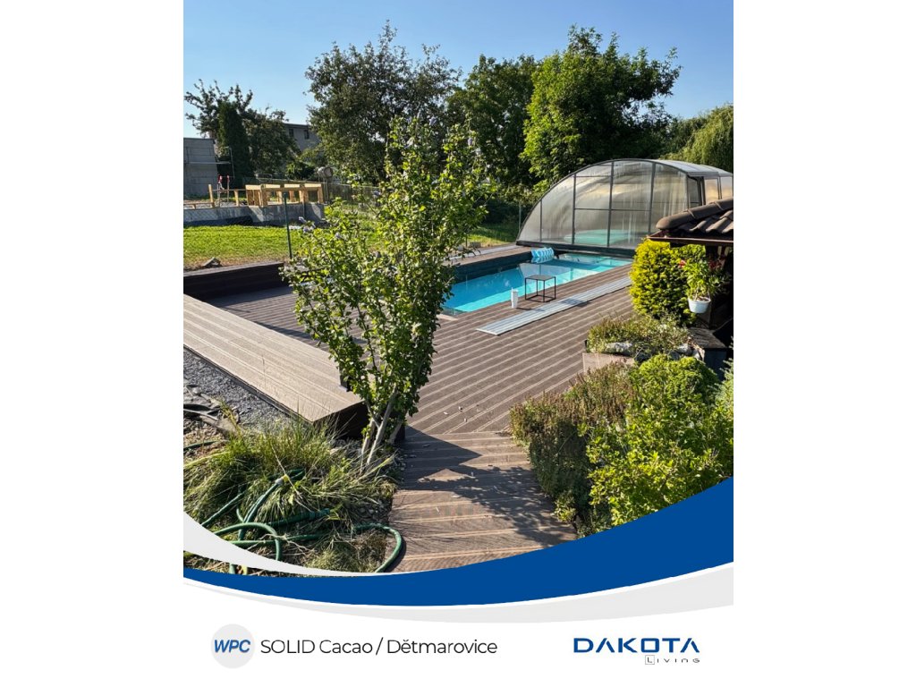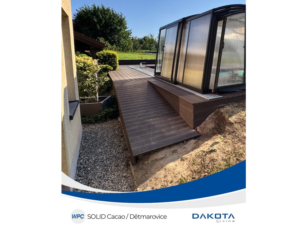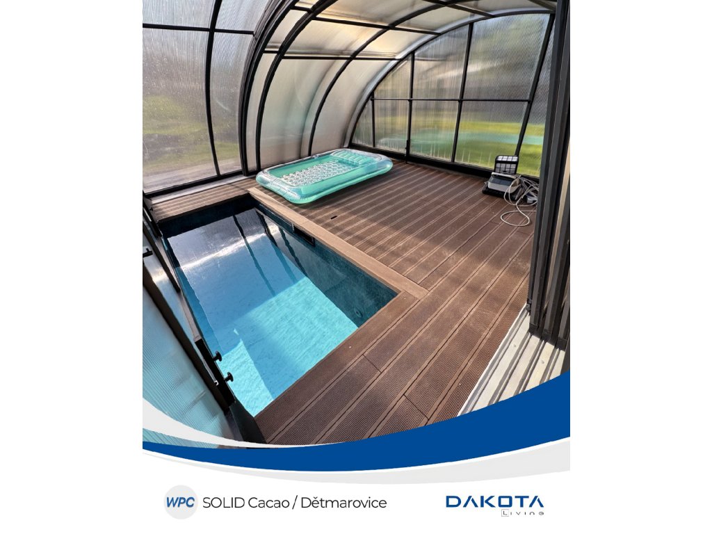 Montáž WPC terasových prken SOLID Cacao kolem bazénu. DĚTMAROVICE, Srpen 2025