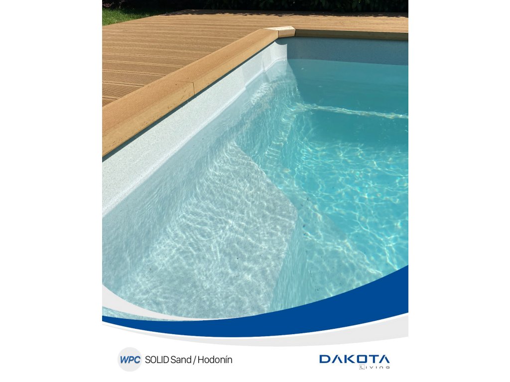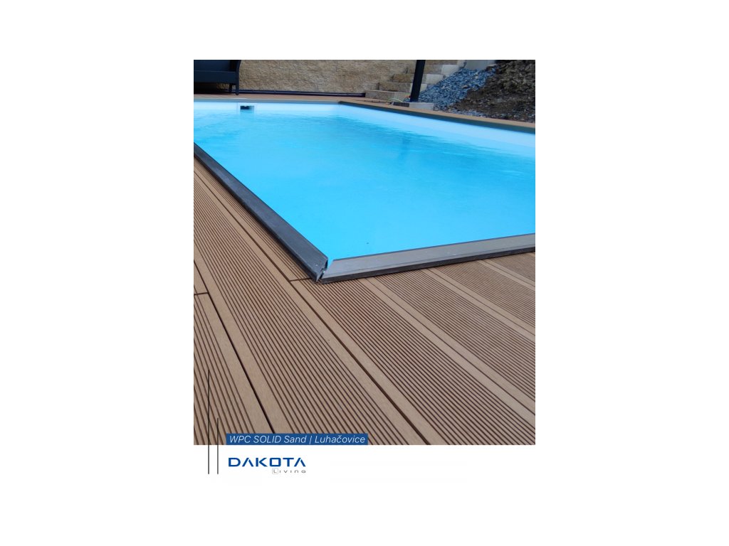 Montáž WPC terasových prken SOLID Sand kolem bazénu, Poděbrady, Listopad 2021