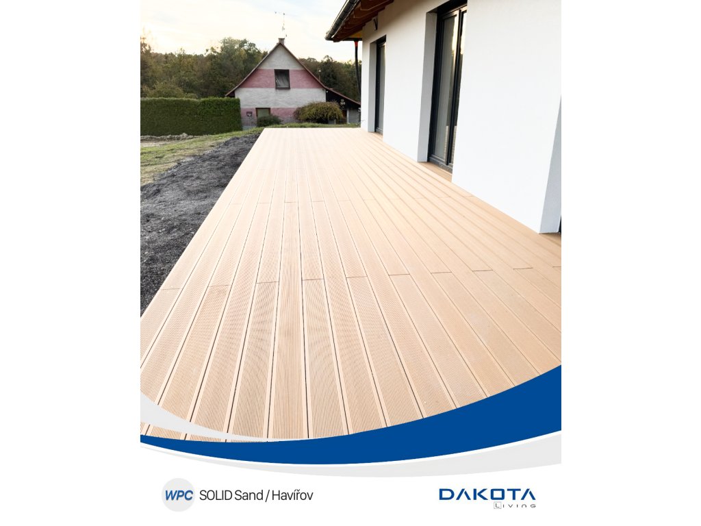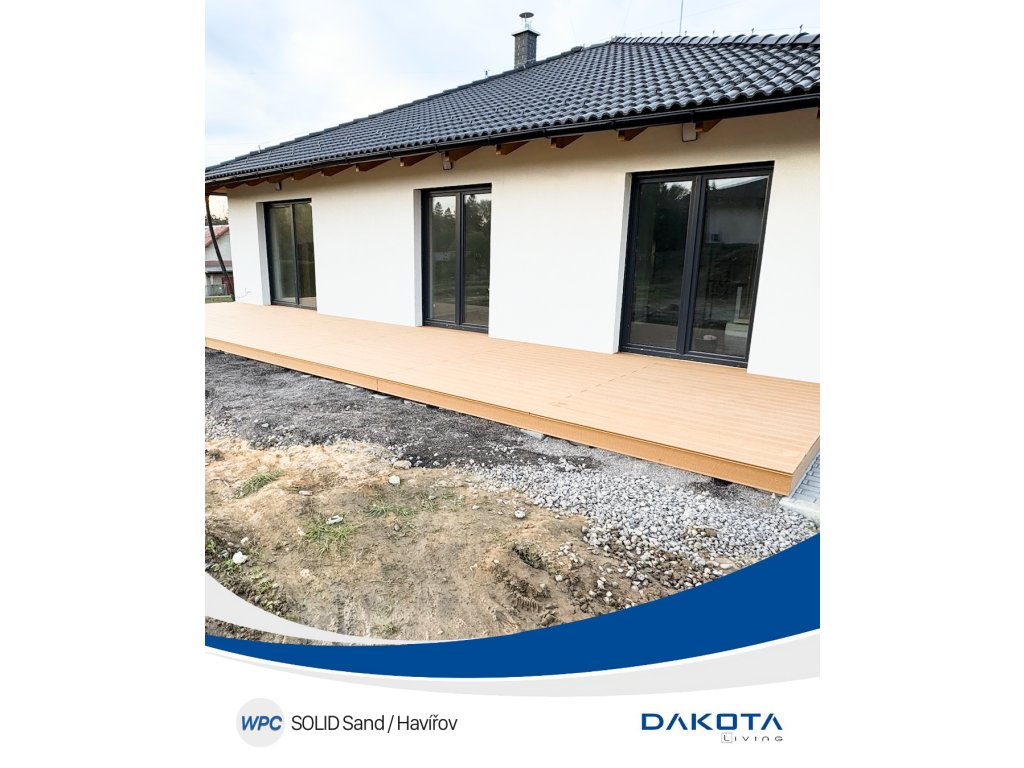 Montáž WPC terasových prken SOLID Sand kolem domu, Frýdlant nad Ostravicí, Duben 2025